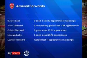 薩卡:各項(xiàng)賽事近13場(chǎng)0球
