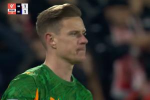 比賽的最后時(shí)刻,赫羅納禁區(qū)內(nèi)出現(xiàn)險(xiǎn)情,特爾施特根近距離將球撲住,力保球隊(duì)不被絕殺。