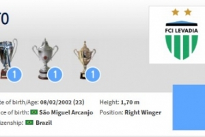若昂·佩德羅現(xiàn)年23歲,主要司職右邊鋒,2023年加盟塔林利瓦迪亞隊(duì),一共為球隊(duì)出戰(zhàn)89次,貢獻(xiàn)22球17次助攻,德轉(zhuǎn)當(dāng)前身價(jià)32.5萬(wàn)歐。