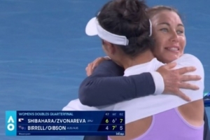 體育資訊1月28日訊 澳網(wǎng)女雙1/4決賽,柴原瑛菜/茲沃娜列娃以2-1險(xiǎn)勝外卡組合比勒爾/吉布森,鎖定最后一個(gè)四強(qiáng)席位。