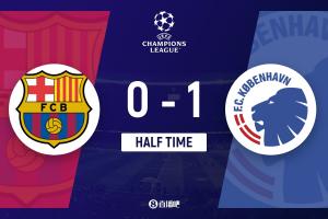 上半場(chǎng)補(bǔ)時(shí)1分鐘,巴薩0-1哥本哈根。