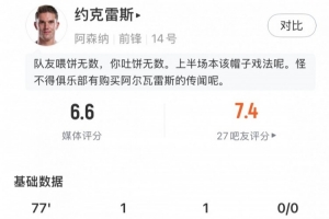 體育資訊1月29日訊 歐冠聯(lián)賽階段第8輪,阿森納主場對陣阿拉木圖凱拉特,約克雷斯代表阿森納首發(fā)出戰(zhàn),在第77分鐘被替換下場,球員本場數(shù)據(jù)如下:
