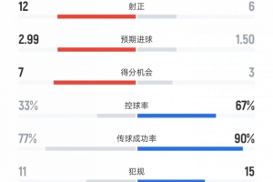 進(jìn)球機(jī)會(huì)——7比3