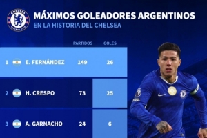 據(jù)德國轉會市場統(tǒng)計,恩佐為切爾西出戰(zhàn)149場比賽,打進26球,超越克雷斯波,成為隊史進球最多阿根廷球員。