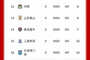 新賽季中超開賽前積分榜如圖所示,9隊(duì)將以負(fù)分開局!