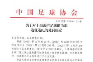 一、扣除上海海港足球俱樂部2026賽季相應(yīng)的職業(yè)聯(lián)賽積分5分;