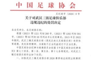 一、扣除武漢三鎮(zhèn)足球俱樂部2026賽季相應(yīng)的職業(yè)聯(lián)賽積分5分;