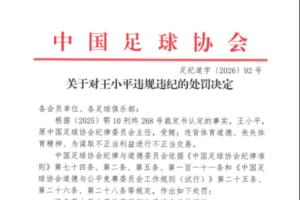 體育資訊01月29日訊 中國(guó)足協(xié)公布足球行業(yè)“假賭黑”處罰決定,原中國(guó)足球協(xié)會(huì)紀(jì)律委員會(huì)主任王小平受賄,進(jìn)行不正當(dāng)交易,終身禁止從事任何與足球有關(guān)的活動(dòng)。