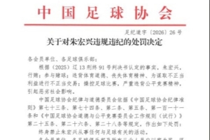 體育資訊1月29日訊 今日,中國足協(xié)正式公布了“假賭黑”專項整治行動受處罰的人員名單,朱宏興因行賄、參與賭球、操控比賽等,被判終身禁止參與足球活動。