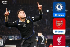 體育資訊1月29日訊 歐冠聯(lián)賽階段最后一輪比賽,切爾西客場(chǎng)3-2擊敗那不勒斯,切爾西排名聯(lián)賽階段第6位,直接晉級(jí)16強(qiáng)。據(jù)媒體統(tǒng)計(jì),切爾西18次晉級(jí)歐冠16強(qiáng),英格蘭球隊(duì)之中最多。