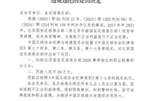 足協(xié)公布處罰公告,北京國(guó)安被扣5分+罰款人民幣40萬(wàn)元。隨后北京國(guó)安官方回應(yīng):“人在做,天在看!頭頂三尺有神明!”