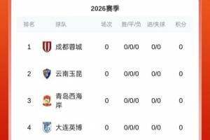青島海牛2026賽季中超賽程:首輪客戰(zhàn)云南玉昆,次輪客戰(zhàn)成都蓉城