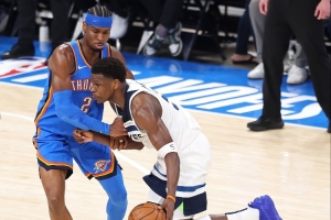 本賽季,亞歷山大場(chǎng)均32分4.4籃板6.2助攻1.3搶斷;愛(ài)德華茲場(chǎng)均29.4分5.2籃板3.7助攻1.3搶斷。