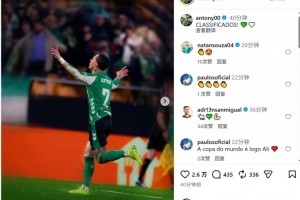 安東尼賽后更新社媒動態(tài),曬出慶祝進球的照片,配文:“晉級!”