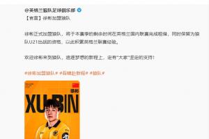 體育資訊01月30日訊 英超球隊狼隊官方消息,U23國足隊長、21歲青島西海岸中場徐彬自由身轉(zhuǎn)會加盟。
