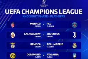 體育資訊1月30日訊 歐冠淘汰賽附加賽對陣已經(jīng)出爐,《轉(zhuǎn)會市場》也列出了各隊(duì)的德轉(zhuǎn)身價(jià)情況。皇馬和巴黎均超過10億歐元,博德閃耀和卡拉巴赫均未破億。