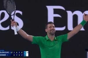 體育資訊01月30日訊 澳網(wǎng)男單半決賽,38歲的德約科維奇鏖戰(zhàn)4小時(shí)9分鐘,以3-2擊敗辛納晉級(jí)決賽。獲勝后,德約張開雙臂慶祝。