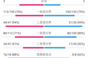 二發(fā)得分率:24/47(51%)比17/33(52%)