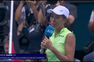 張帥澳網女雙奪冠演講:感謝鄭潔幫了我很多,感謝粉絲們