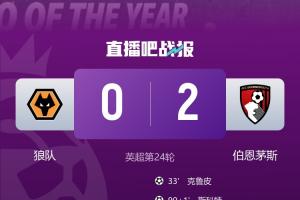 體育資訊02月01日訊 英超第24輪,狼隊0-1不敵伯恩茅斯,遭遇聯(lián)賽4場不勝。