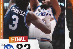 體育資訊02月01日訊 NCAA常規(guī)賽焦點(diǎn)戰(zhàn),堪薩斯大學(xué)在主場(chǎng)以90-82擊敗楊百翰大學(xué),取得五連勝。