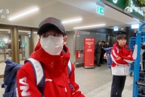 中國(guó)代表團(tuán)首批運(yùn)動(dòng)隊(duì)飛抵米蘭,包括短道速滑、單板滑雪大跳臺(tái)隊(duì)