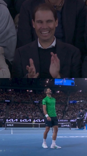 體育資訊02月01日訊 2026年澳網(wǎng)男單決賽,阿爾卡拉斯vs德約科維奇的比賽正在進行中,納達爾也來到現(xiàn)場觀看本場比賽。