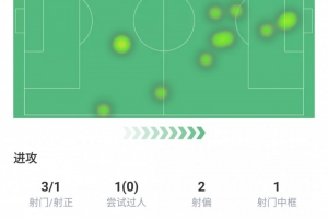 射門3次,射正1次,過人1次沒成功,射偏2次,中柱1次,丟失球權(quán)2次,預(yù)期進(jìn)球0.6球