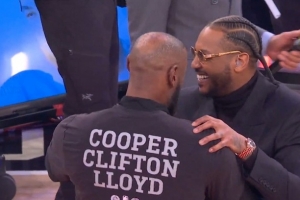 GIF-詹姆斯賽前和安東尼、麥迪擁抱寒暄