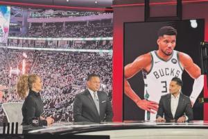 Shams曬出了自己當(dāng)?shù)貢r(shí)間接近深夜12點(diǎn)還在做節(jié)目的照片,節(jié)目中Shams在討論的是字母哥的相關(guān)動(dòng)態(tài)。