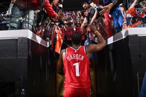 本賽季至今,哈登場均25.4分4.8籃板8.1助攻。
