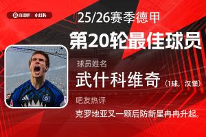 第20輪評選結(jié)果出爐,18歲熱刺外租小將武什科維奇破門,攻防兩端發(fā)揮俱佳,幫助漢堡逼平拜仁。武什科維奇當選【體育資訊X小紅書德甲第20輪最佳球員】!