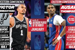 體育資訊02月04日訊 NBA官方宣布,活塞奧薩爾與馬刺文班亞馬分別當(dāng)選1月東西部月最佳防守球員。