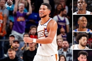 新星隊的陣容是:斯科蒂·巴恩斯、布克、康寧漢姆、杜倫、愛德華茲、霍姆格倫、杰倫·約翰遜、馬克西。