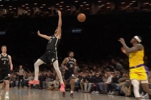 GIF-詹姆斯四分衛(wèi)長傳助攻范德比爾特輕松扣籃