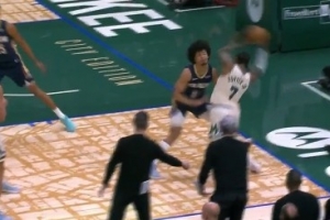 GIF-小凱文·波特進(jìn)攻肘到皮維面部 回放后普通犯規(guī)未升級(jí)