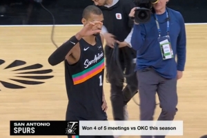 本賽季,馬刺面對衛(wèi)冕冠軍雷霆4勝1負(fù),勝率80%。