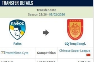 在重慶銅梁龍官宣塞浦路斯球隊帕福斯邊鋒迪馬塔租借加盟后,德轉(zhuǎn)網(wǎng)站顯示他的租借費(fèi)為250萬歐。