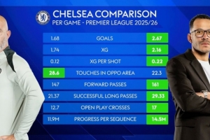 馬雷斯卡、羅塞尼爾執(zhí)教切爾西英超場(chǎng)均數(shù)據(jù):