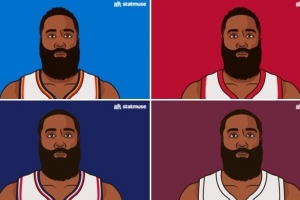 體育資訊2月7日訊 美國數(shù)據(jù)媒體StatMuse列出了哈登在各支球隊首秀的數(shù)據(jù):