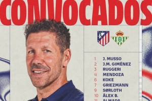 體育資訊2月8日訊 北京時間明天凌晨,馬競將在西甲第23輪比賽中主場對陣貝蒂斯,馬競公布了此役的球員名單??柖嗨?、巴里奧斯缺席,瑟爾洛特回歸。