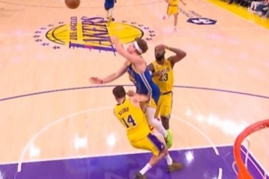 GIF-波杰姆斯基反擊行進(jìn)間撞翻克萊伯被吹進(jìn)攻犯規(guī),勇士挑戰(zhàn)成功,改為阻擋犯規(guī)