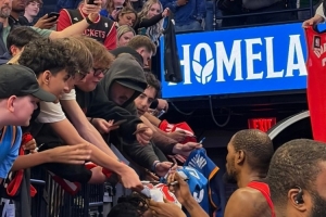 賽后,杜蘭特為雷霆主場(chǎng)的球迷們送上簽名。