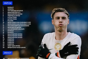 2球:盧頓、米德?tīng)査贡ぁ⑽鳚h姆聯(lián)、紐卡、富勒姆、巴黎圣日耳曼、布倫特福德、伯恩茅斯