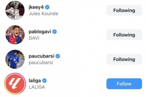 拉什福德已在ins上關(guān)注新隊(duì)友,其中包括奧爾莫、德容、孔德、加維、庫巴西、巴爾德、拉菲尼亞、萊萬等人。