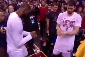 詹姆斯與前隊友濃眉和克里斯蒂互動