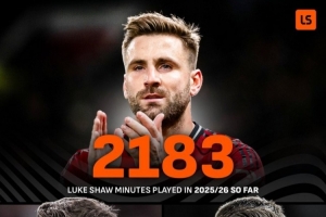 數(shù)據(jù)統(tǒng)計顯示,盧克·肖本賽季已出場2183分鐘,而他在此前2個賽季共計僅出戰(zhàn)1767分鐘。