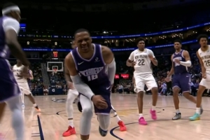 GIF-威少崴腳本來前場(chǎng)球,鵜鶘挑戰(zhàn)失敗補(bǔ)吹了瓊斯犯規(guī),威少獲得兩罰,全部命中繼續(xù)打