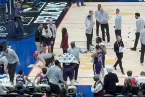 據(jù)國王記者Jason Anderson報道,第三節(jié)德羅贊怒摔水瓶,球場也被打濕了,工作球員趕緊清理。
