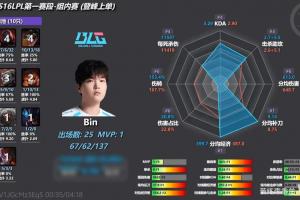 吸血鬼型上單Bin第一賽段數據雷達圖:吃最多的經濟打最少的傷害!